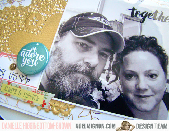 | I cut the "Hello Love" phrase from the Crate Paper Gold Hearts that were included in the kit and added it to the bottom left card. |