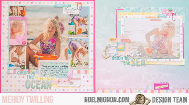 I did pull the small alphabet stickers and the epoxy stickers from the June Noel Mignon kit, I also pulled the little wooden anchor and a pink paperclip from my stash. All of the other bits and pieces on this layout came from the "High Five" Daily Diary Kit.
